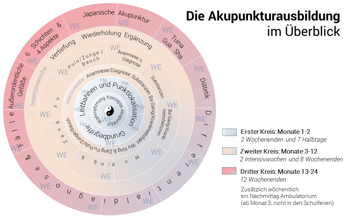 Wochenenden zu Punktauswahl und Punktkombination, zur weiteren Differenzierung westlicher und chinesischer Krankheitsbilder und zu Strategien der Diagnostik bereiten sie auf den Praxisalltag vor.